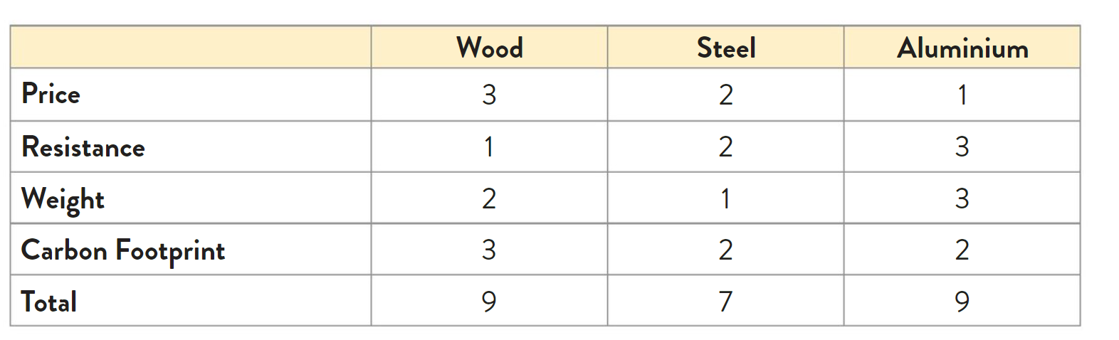 Exercise : draw a decision matrix table to build a outdoor barbecue.