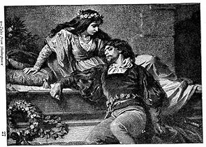 Romeo : (he opens the tomb) A grave? Oh, my love! my Wife! Dead! Ah, dear Juliet, why are you still so beautiful? I will never leave this tomb. And before I die, let me kiss you one last time. (Romeo kisses Juliet and takes out the poison). Come bitter poison, here's to my love! (Romeo drinks the poison) So, with a kiss I die.